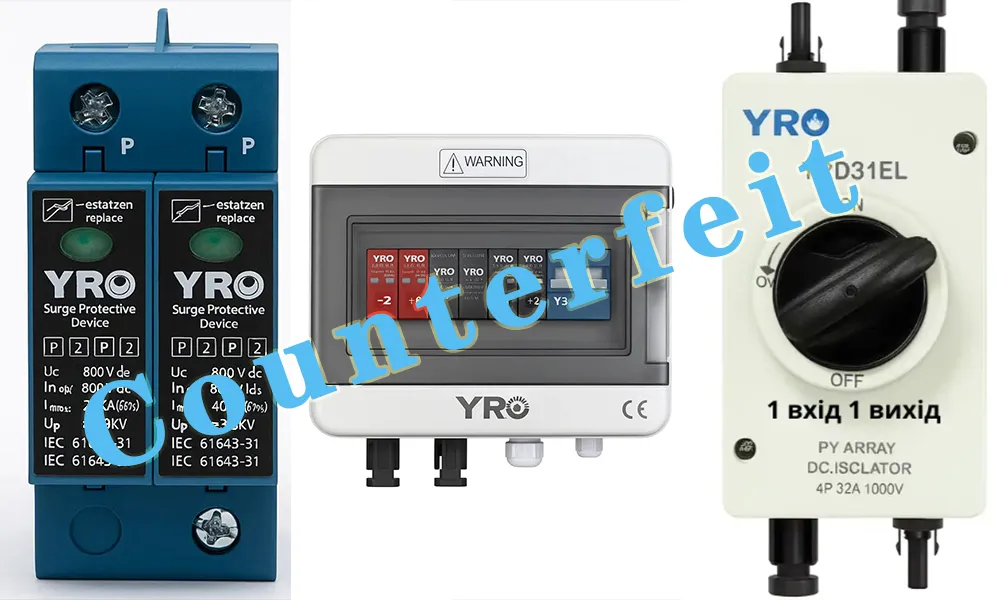 हाल ही में, हमें अक्सर ग्राहकों से प्रतिक्रिया मिली है कि उनके द्वारा खरीदे गए वाईआरओ उत्पादों में नकली उत्पाद पाए गए हैं, जिनमें सर्किट ब्रेकर, कंबाइनर बॉक्स और सर्ज प्रोटेक्टर जैसे कई आइटम शामिल हैं।